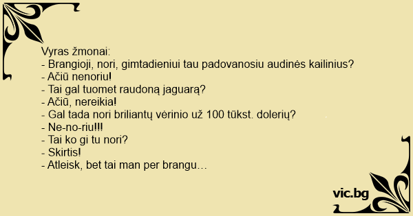 - Brangioji, nori, gimtadieniui tau padovanosiu audinės kailinius?