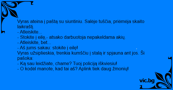 Vyras ateina į paštą su...