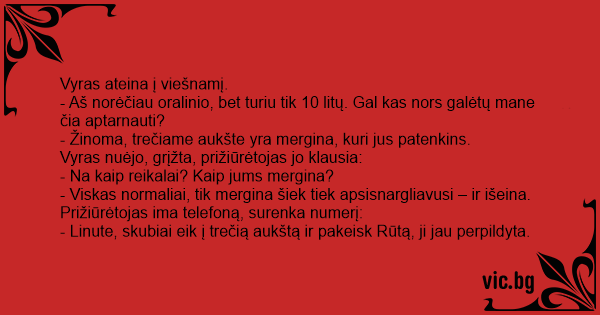 - Žinoma, trečiame aukšte yra mergina, kuri jus patenkins.