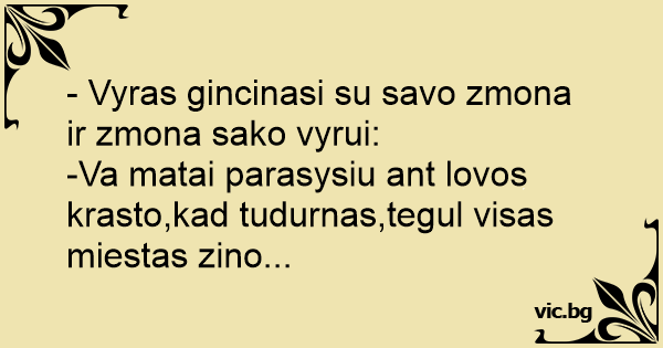 - Vyras gincinasi su savo zmona ir zmona sako vyrui: -Va matai parasysiu ant lovos krasto,kad tudurnas,tegul visas miestas zino...