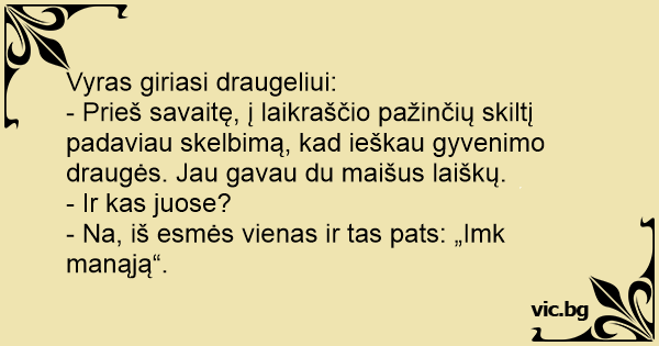 Vyras giriasi draugeliui: -...