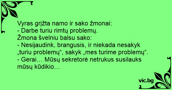 Vyras grįžta namo ir sako žmonai: