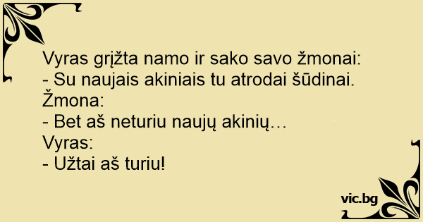 Vyras grįžta namo ir sako savo žmonai: