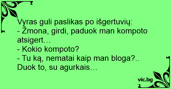 - Tu ką, nematai kaip man bloga?.. Duok to, su agurkais…