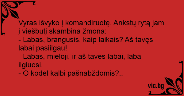 Vyras išvyko į komandiruotę. Ankstų rytą jam į viešbutį skambina žmona: