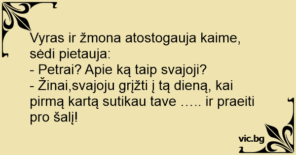 - Žinai,svajoju grįžti į tą dieną, kai pirmą kartą sutikau tave ….. ir praeiti pro šalį!