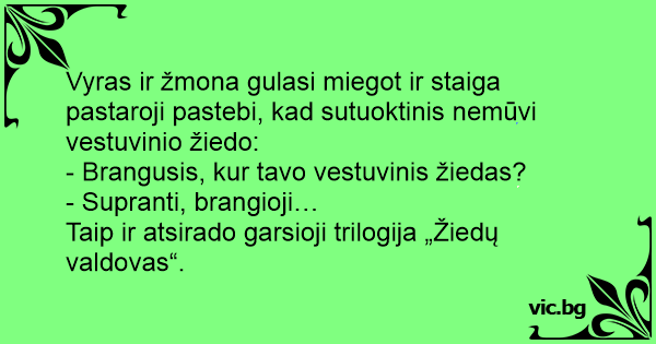 Vyras ir žmona gulasi miegot ir staiga pastaroji pastebi, kad sutuoktinis nemūvi vestuvinio žiedo: