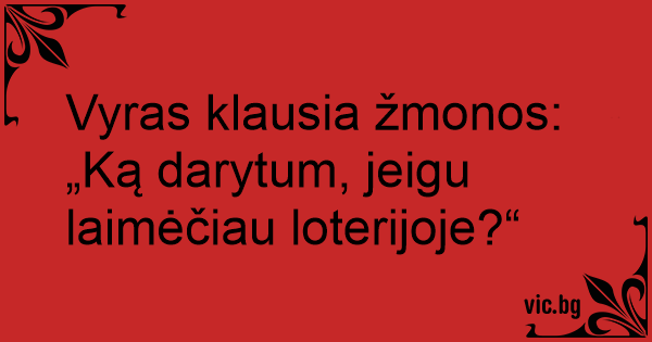 Vyras klausia žmonos: „Ką darytum, jeigu laimėčiau loterijoje?“