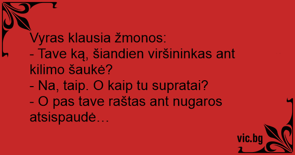 - Tave ką, šiandien viršininkas ant kilimo šaukė?
