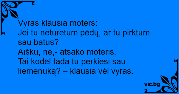 Tai kodėl tada tu perkiesi sau liemenuką? – klausia vėl vyras.
