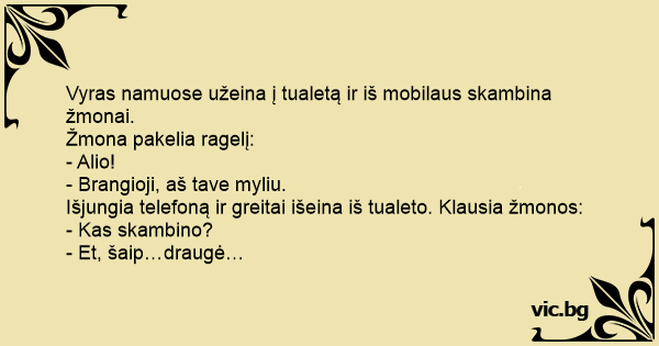 Išjungia telefoną ir greitai išeina iš tualeto. Klausia žmonos: