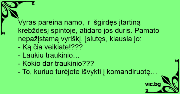 Vyras pareina namo, ir...