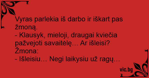 Vyras parlekia iš darbo ir iškart pas žmoną.