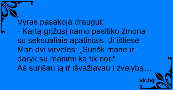 - Kartą grįžusį namo pasitiko žmona su seksualiais apatiniais. Ji ištiesė