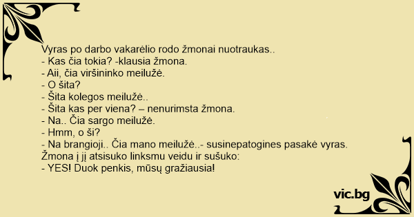 Žmona į jį atsisuko linksmu veidu ir sušuko:
