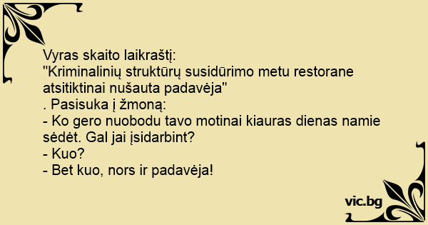 - Ko gero nuobodu tavo motinai kiauras dienas namie sėdėt. Gal jai įsidarbint?