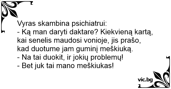 - Ką man daryti daktare? Kiekvieną kartą, kai senelis maudosi vonioje, jis prašo, kad duotume jam guminį meškiuką.
