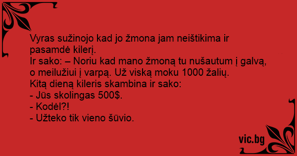 Vyras sužinojo kad jo žmona jam neištikima ir pasamdė kilerį.
