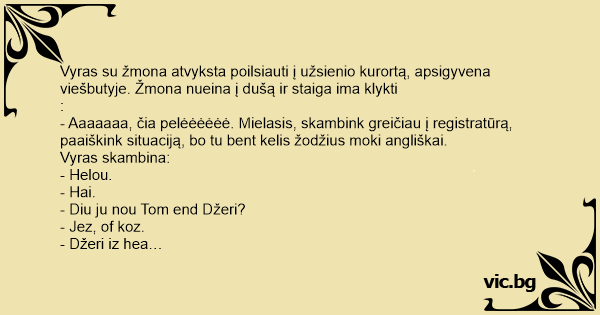 - Aaaaaaa, čia pelėėėėėė. Mielasis, skambink greičiau į registratūrą, paaiškink situaciją, bo tu веnт kelis žodžius moki angliškai.
