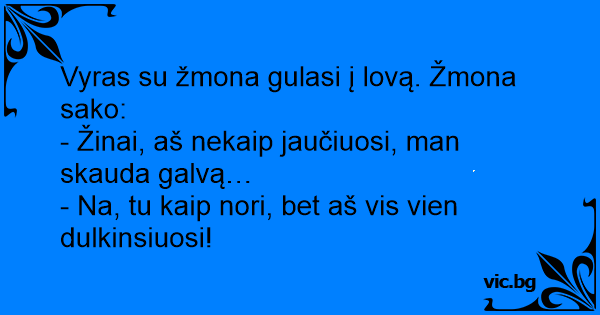 Vyras su žmona gulasi į lovą. Žmona sako: