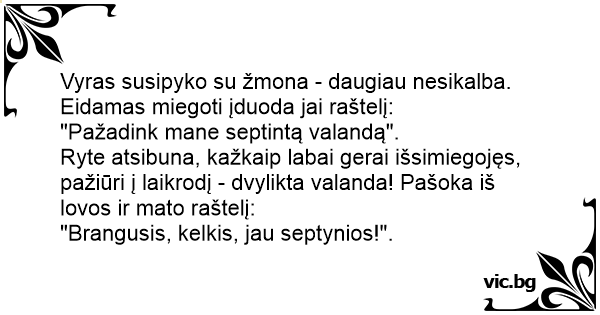 Ryte atsibuna, kažkaip labai gerai išsimiegojęs, pažiūri į laikrodį - dvylikta valanda! Pašoka iš lovos ir mato raštelį: