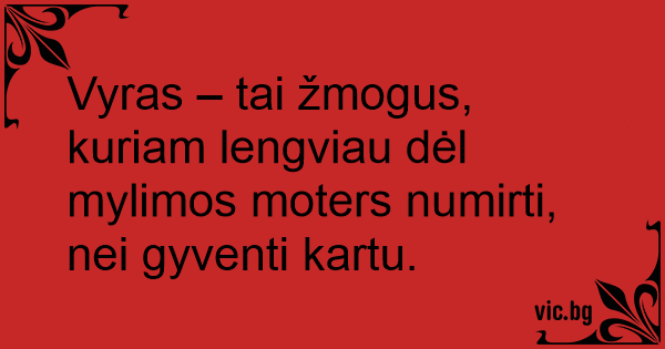 Vyras – tai žmogus, kuriam lengviau dėl mylimos moters numirti, nei gyventi kartu.