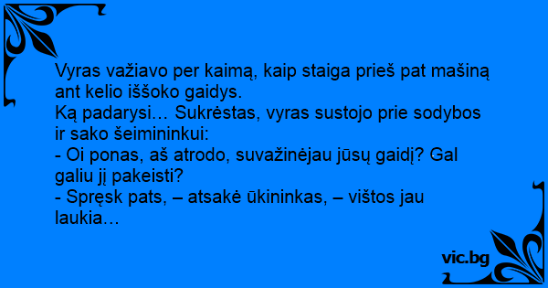 - Spręsk pats, – atsakė ūkininkas, – vištos jau laukia…