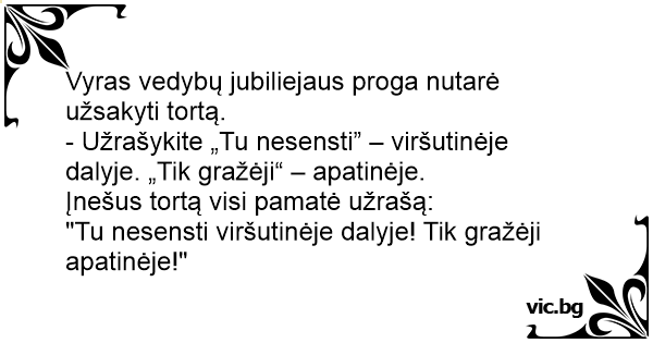 Vyras vedybų jubiliejaus proga nutarė užsakyti tortą.