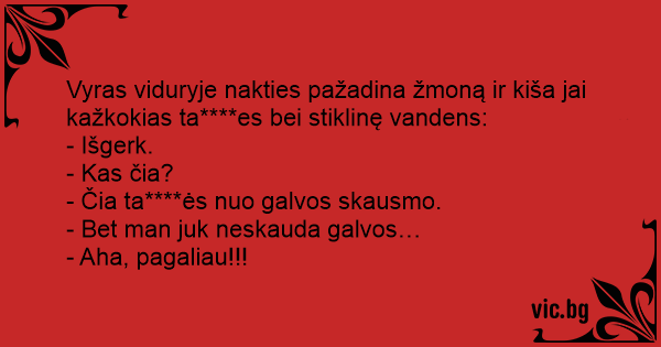 Vyras viduryje nakties pažadina žmoną ir kiša jai kažkokias ta****es bei stiklinę vandens: