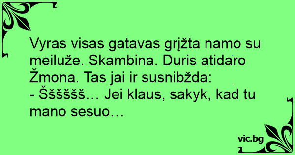 Vyras visas gatavas grįžta namo su meiluže. Skambina. Duris atidaro