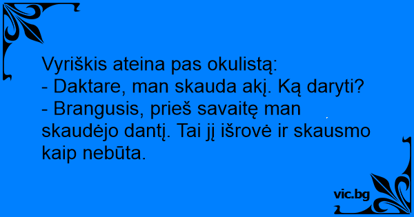 - Brangusis, prieš savaitę man skaudėjo dantį. Tai jį išrovė ir skausmo kaip nebūta.