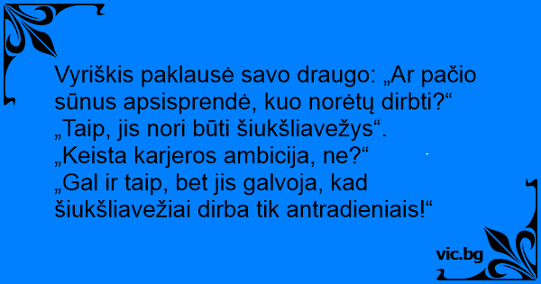 Vyriškis paklausė savo draugo: „Ar pačio sūnus apsisprendė, kuo norėtų dirbti?“