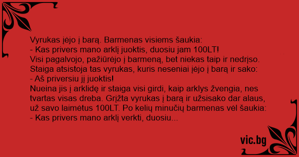 - Kas privers mano arklį juoktis, duosiu jam 100LT!