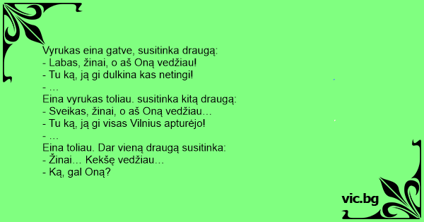 - Sveikas, žinai, o aš Oną vedžiau…