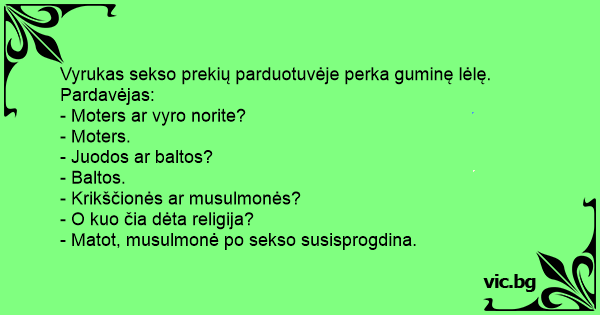 Vyrukas sekso prekių parduotuvėje perka guminę lėlę. Pardavėjas: