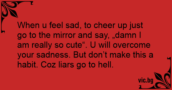 When u feel sad, to cheer up just go to the mirror and say, „dамn I am really so cute“. U will overcome your sadness. But don’t make this a habit. Coz liars go to hеll.