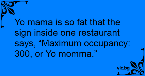 Yo mama is so fат that the sign inside one restaurant says, “Maximum occupancy: 300, or Yo momma.”