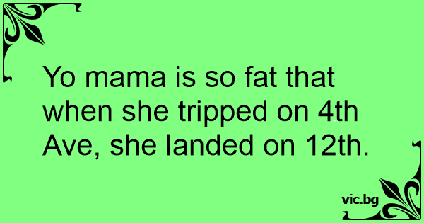 Yo mama is so fат that when she tripped on 4th Ave, she landed on 12th.