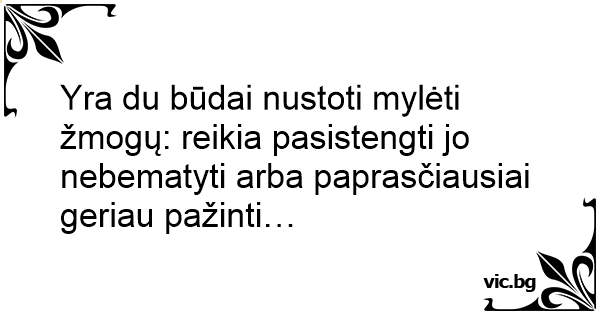 Yra du būdai nustoti mylėti žmogų: reikia pasistengti jo nebematyti arba paprasčiausiai geriau pažinti…