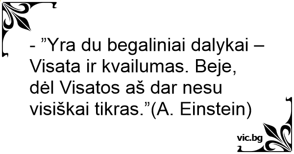 - ”Yra du begaliniai dalykai – Visata ir kvailumas. Beje, dėl Visatos aš dar nesu visiškai tikras.”(A. Einstein)