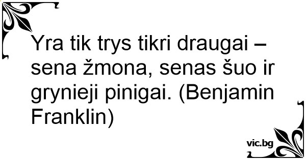 Yra tik trys tikri draugai – sena žmona, senas šuo ir grynieji pinigai. (Benjamin Franklin)