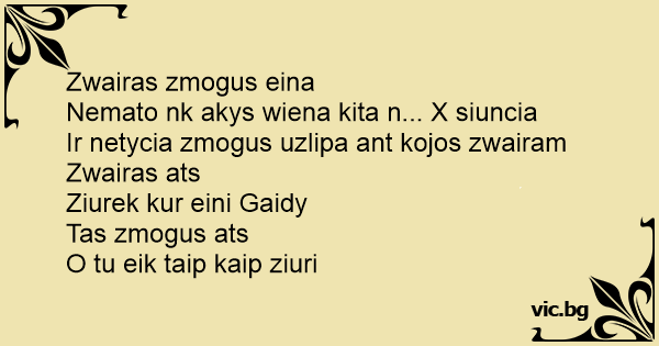 Ir netycia zmogus uzlipa ant kojos zwairam