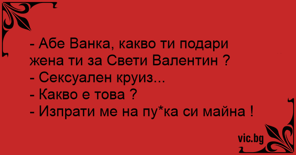 - Абе Ванка, какво ти подари жена ти за Свети Валентин ?