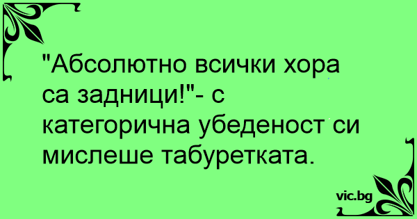 "Абсолютно всички хора са задници!"- с категоричнa убеденoст си мислеше табуретката.
