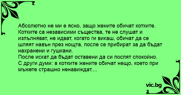 Абсолютно не ми е ясно, защо жените обичат котките.
