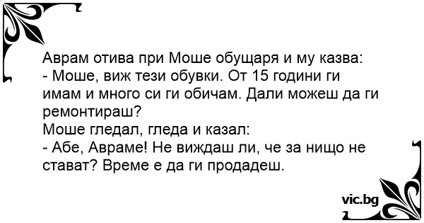 Аврам отива при Моше обущаря и му казва: