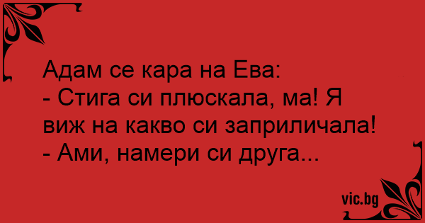 Адам се кара на Ева: -...