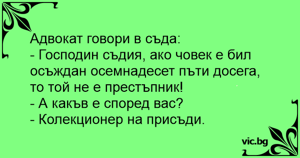 - Господин съдия, ако човек е бил осъждан осемнадесет пъти досега, то той не е престъпник!