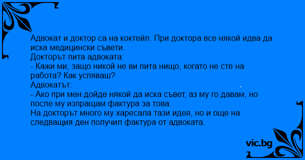 На докторът много му харесала тази идея, но и още на следващия ден получил фактура от адвоката.