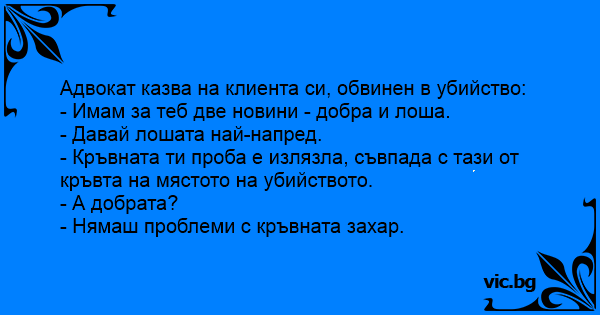 • Вицове от Facebook от нашата страница https://www.facebook.com/www.vic.bg